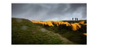 ‘Hush’ was a temporary art installation in the remote landscape of the North Pennines Area of Outstanding Natural Beauty, County Durham, UK. Over 600 large saffron-yellow flags fill a man-made scar in the landscape bringing colour, sound and movement to transform this former industrial feature.